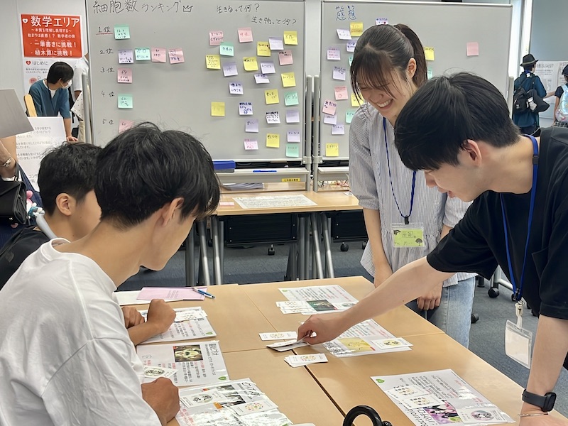 生命理学エリアでは、オリジナルの細菌のカードゲームを通して細菌の生存戦略を知り、そして「生物ってなんだろう」「生きているとはどういうことなのか?」といったことを考えてもらいました。
