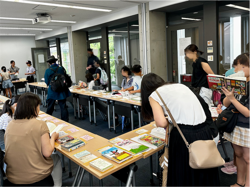 立ったままパラパラめくってみたり、座ってじっくり読んだり、気になった本を手に取って思い思いの時間を過ごしていただきました。