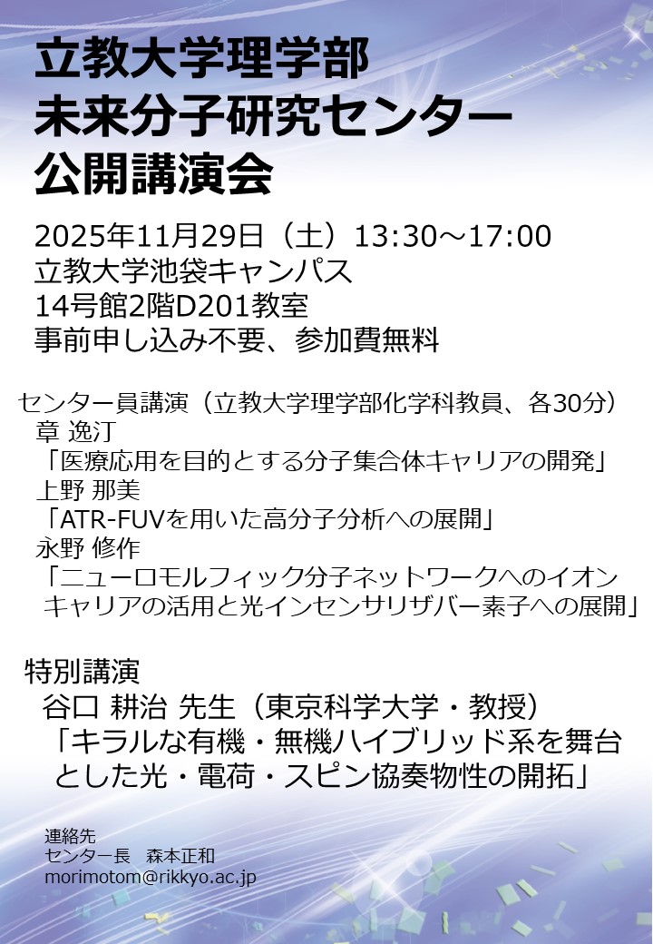 立教大学理学部未来分子研究センター公開講演会のお知らせ