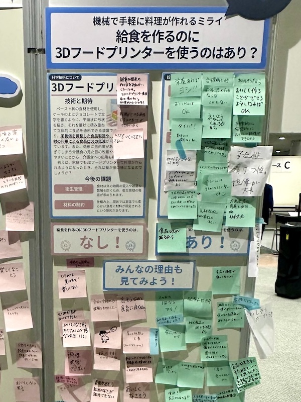と語り、倫理面や安全性、社会への影響、人の暮らしとの調和など、様々な観点から、科学技術とのかかわり方について考える姿が見受けられました。投票理由は人それぞれ異なり、投票というアクションを通して多様な価値観を可視化することができました。