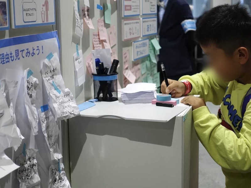 問いごとに、ジグソーパズル・輪投げ・ガチャガチャ・紙くず投票など、さまざまな投票体験を用意し、子どもから大人まで楽しく参加できる工夫を凝らしました。