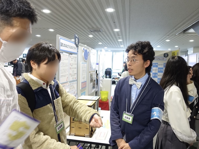 ですからセンター員たちは、来場者と直接向き合って話す機会を作ろうと、企画・展示をより一層盛り上げる工夫をたくさん用意しました。そのうちの一つが、来場者が展示ブース外を歩いているセンター員に声を掛けることで始まる対話です。この対話では、未来での科学技術に関する物事の決め方について、賛成・反対といった結論だけでなく、どのような基準や価値観で物事を判断するのかまで話題が広がりました。その結果、来場者一人ひとりの考えの背景や重視している点について共有する時間が生まれ、より丁寧な意見交換につながったと感じています。