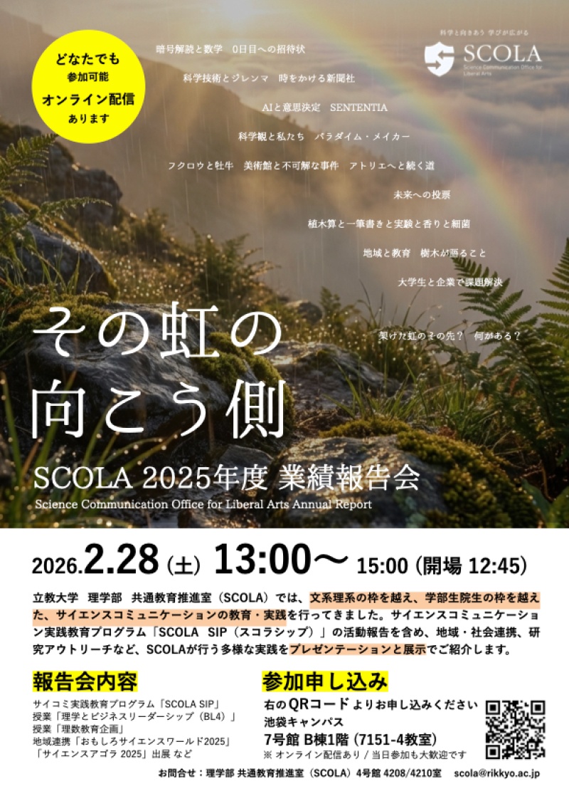 2026年2月28日(土) 理学部 SCOLA 業績報告会「その虹の向こう側」を開催します【SCOLA】